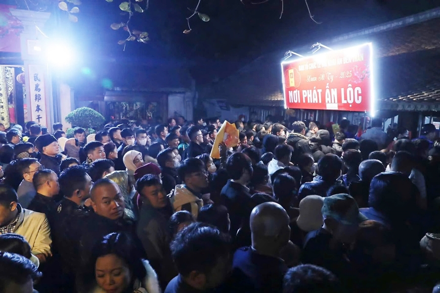 Theo ghi nhận, đông đảo người dân và du khách đã thức đêm, chờ đến giờ xin lộc ấn (bắt đầu từ 5 giờ sáng 12-2, tức 15 tháng Giêng).