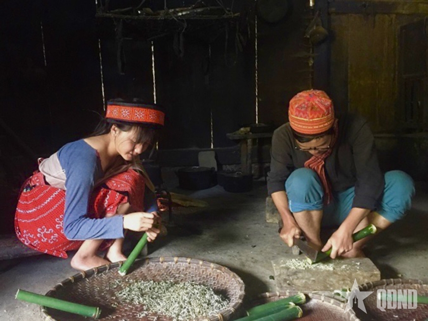 “Phải sao vừa tay, vừa lửa, không để cháy. Chè mà khét là hỏng hương ngay”, chị nói, không rời mắt khỏi chảo. “Khi nghe tiếng lá kêu nhỏ, ngửi thấy hương chè ‘thở’ ra, lúc đó mới hạ lửa. Chè lúc ấy mới ngấm được khói bếp – hương đặc trưng của Tà Xùa”.