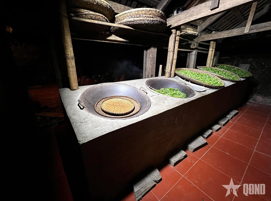 Căn bếp với đầy đủ các công cụ đã sẵn sàng cho công đoạn sao chè. |