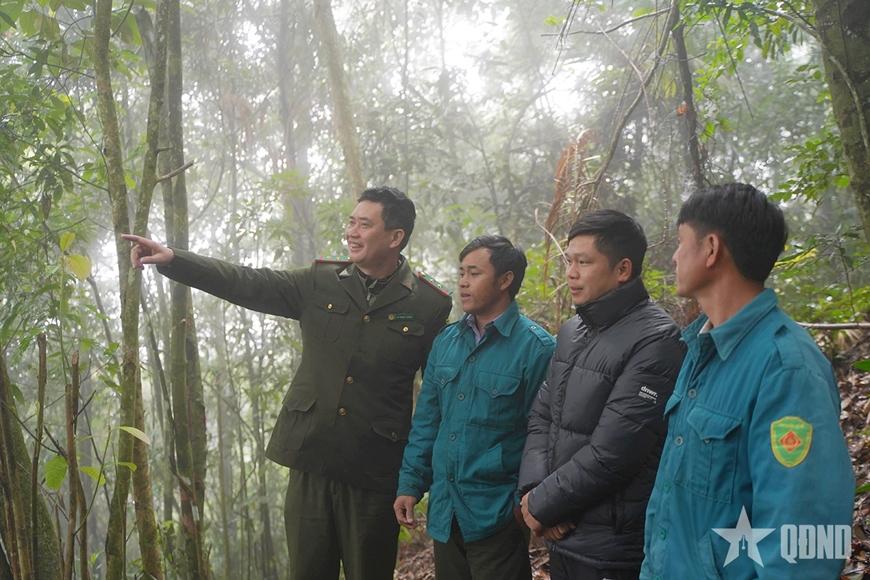 Anh Giàng Páo Manh (đứng thứ 2 từ trái qua) vẫn hằng ngày tuần tra rừng đều đặn. |