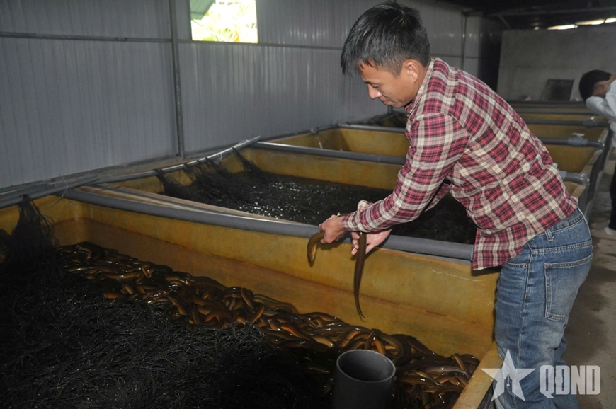 Để có mặt bằng sản xuất, gia đình anh Phong đã cải tạo khu đất hoang rộng khoảng 750m², thuê máy móc san ủi mặt bằng. Ngoài nguồn vốn tự có, gia đình còn nhờ người thân tín chấp vay thêm 200 triệu đồng để đầu tư xây dựng bể nuôi, mua con giống và trang thiết bị. Anh Phong cho biết, thời gian đầu nuôi lươn gặp không ít khó khăn do chưa có kinh nghiệm, tỷ lệ lươn chết khá cao. Tuy nhiên, nhờ kiên trì học hỏi, tham gia các lớp tập huấn kỹ thuật và rút kinh nghiệm thực tế, anh dần nắm vững quy trình từ khâu chọn giống, chăm sóc đến phòng bệnh. Tỷ lệ lươn sống từ mức khoảng 75% ban đầu đã tăng lên trên 95%, đàn lươn sinh trưởng tốt.