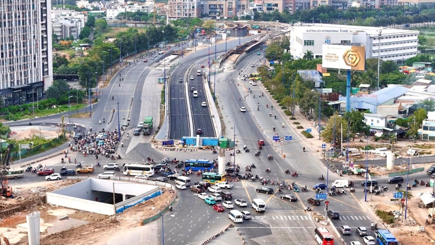 Nút giao An Phú là công trình giao thông trọng điểm của TP Hồ Chí Minh, dự kiến về đích trong quý II-2026. Ảnh: TRẦN ÚT