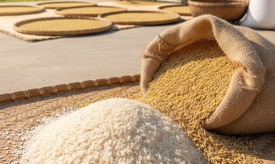 Trong nước, các loại gạo nguyên liệu và lúa tươi duy trì mức thu mua ổn định, không có biến động mạnh — cho thấy thị trường đang “đi ngang.”
