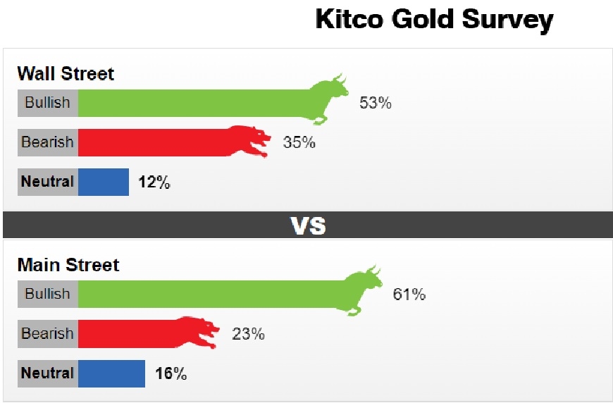 Cụ thể, trong số các nhà phân tích Phố Wall tham gia cuộc khảo sát vàng của Kitco News có 53% dự báo giá vàng tăng vào tuần tới. Tương tự, 61% số nhà đầu tư bán lẻ tham gia các cuộc thăm dò trực tuyến trên Main Street có chung quan điểm.