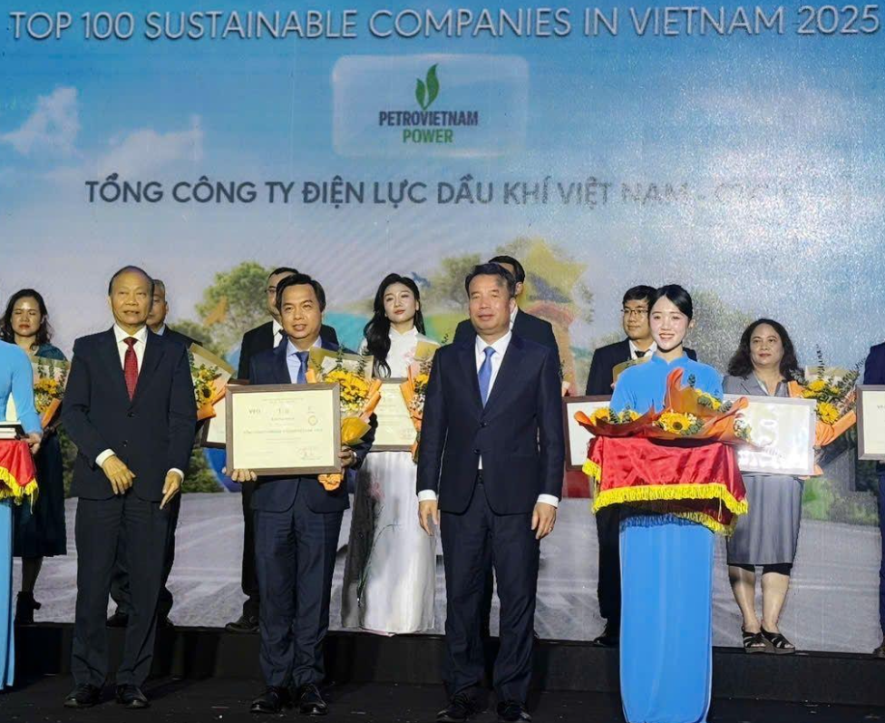 Ông Phan Ngọc Hiền – Phó Tổng giám đốc PV Power đại diện nhận vinh danh Top 100 doanh nghiệp bền vững Việt Nam năm 2025