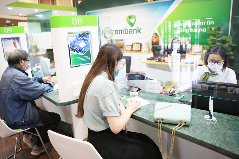 Khách giao dịch tại Ngân hàng thương mại cổ phần Ngoại thương Việt Nam.