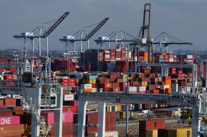Các container vận chuyển từ Trung Quốc tại cảng Los Angeles ở Wilmington (California, Mỹ) hôm 4-2. Ảnh: Reuters |