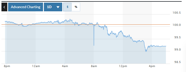 Biểu đồ biến động Chỉ số DXY trong 24 giờ qua. Ảnh: Market watch