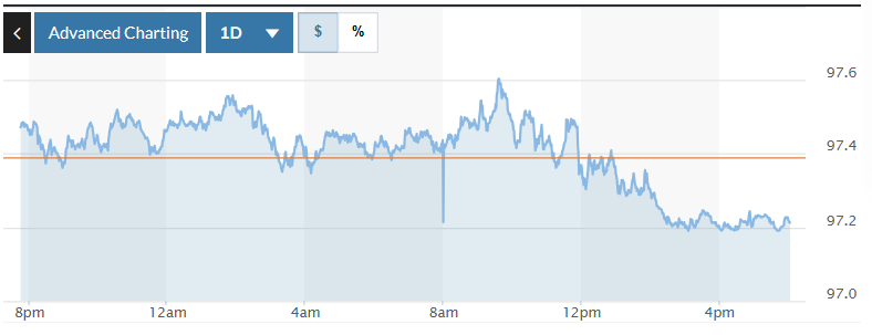 | Biểu đồ biến động Chỉ số DXY trong 24 giờ qua. Ảnh: Marketwatch |