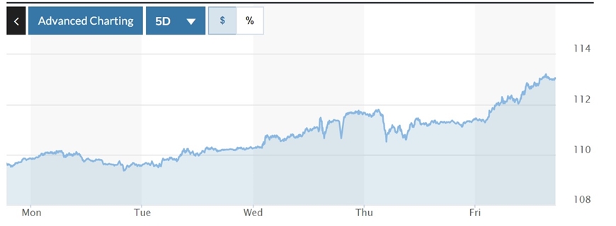 Biểu đồ biến động Chỉ số DXY trong tuần qua. Ảnh: Marketwatch. |