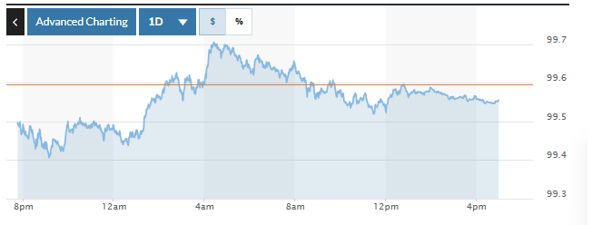 | Biểu đồ biến động Chỉ số DXY trong 24 giờ qua. Ảnh: Marketwatch |