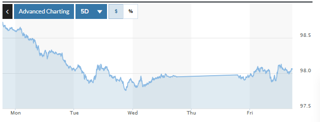 Chỉ số USD Index (DXY) đo lường biến động đồng bạc xanh với 6 đồng tiền chủ chốt đứng ở mức 98,05.