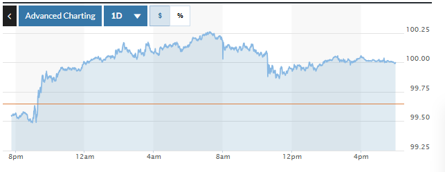| Biểu đồ biến động Chỉ số DXY trong 24 giờ qua. Ảnh: Market watch |