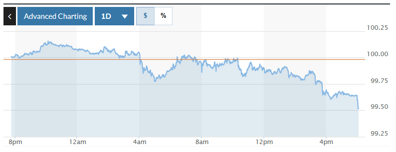 Biểu đồ biến động Chỉ số DXY trong 24 giờ qua. Ảnh: Market watch |