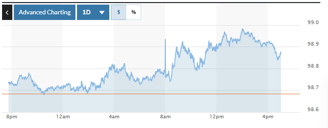 | Biểu đồ biến động Chỉ số DXY trong 24 giờ qua. Ảnh: Marketwatch |