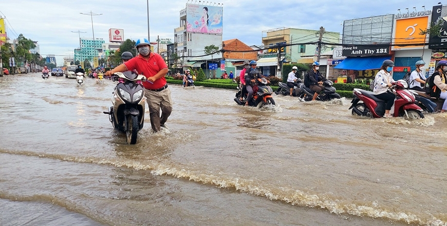 Triều cường dâng cao đã làm nhiều tuyến đường nội ô TP Cần Thơ chìm trong biển nước, có nơi ngập sâu hết gần bánh xe. Điều này ảnh hưởng rất lớn đến việc sinh hoạt, đi lại của người dân.