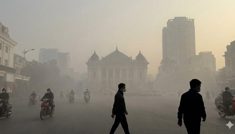 Sương mù hòa quyện với bụi mịn khiến tầm nhìn tại Hà Nội hạn chế - Ảnh minh họa