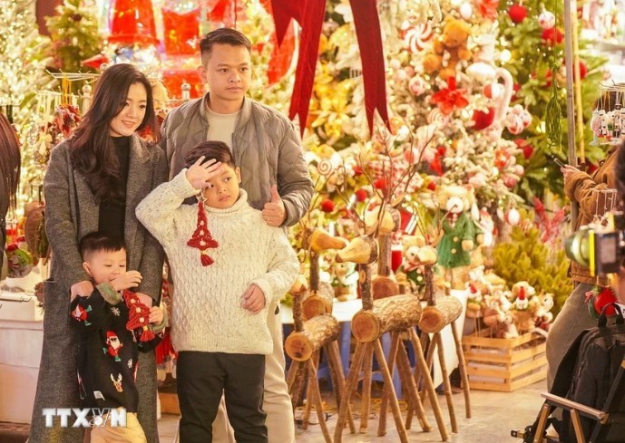 Người dân dạo chơi, chụp ảnh chào đón Giáng sinh tại Thủ đô Hà Nội. Ảnh minh họa: TTXVN |