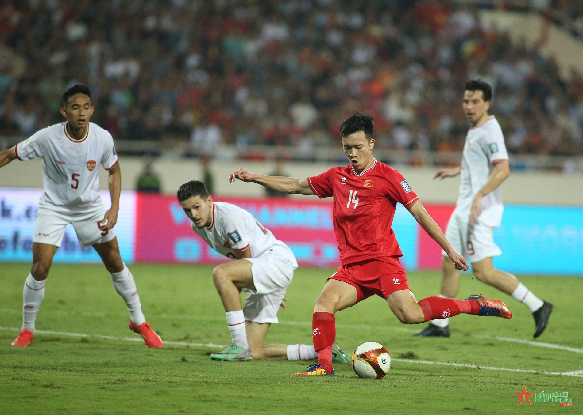 | Hoàng Đức (số 14) trong trận đấu với Indonesia |
