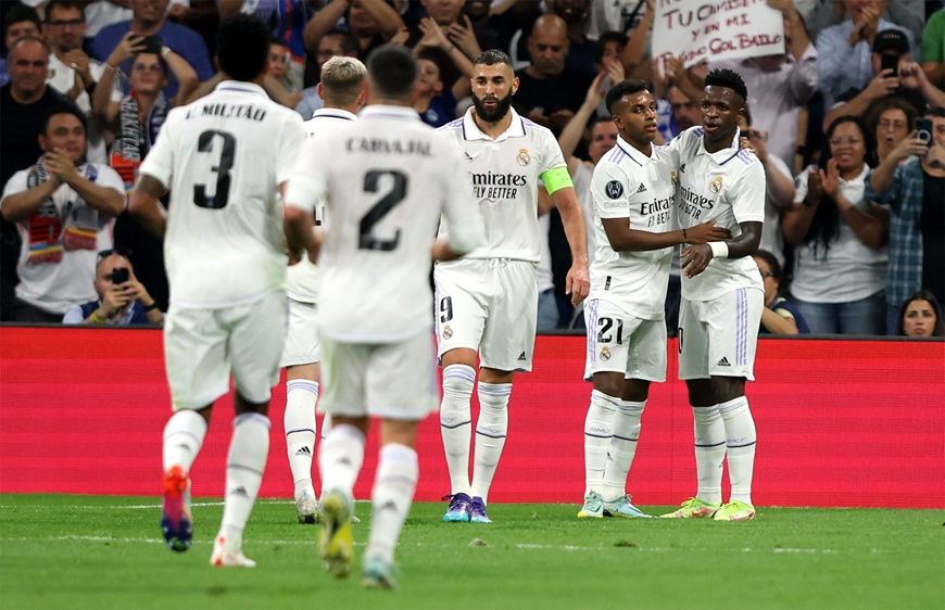 Ngay sau tiếng còi khai cuộc, đội bóng hoàng gia Tây Ban Nha đã tấn công dồn dập và liên tục bắn phá khung thành của đội khách. Sau hơn nửa hiệp 1, nhà đương kim vô địch La Liga đã có 2 bàn thắng nhờ công của Rodrygo (13’) và Vinicius (28’).