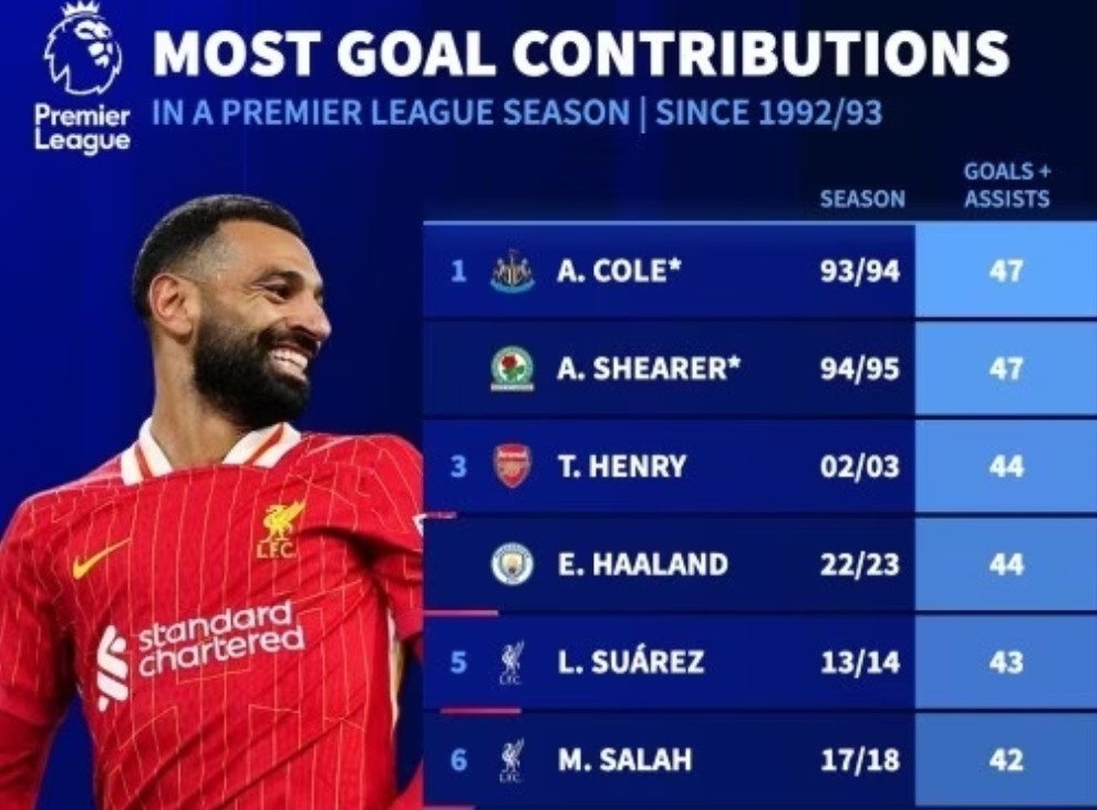 Salah lúc này chỉ còn tối thiểu 8 lần ghi bàn hoặc kiến tạo nữa trong 12 vòng đấu còn lại, là sẽ đi vào lịch sử với tư cách cầu thủ ghi bàn và kiến tạo nhiều nhất trong một mùa giải ở Ngoại hạng Anh qua mọi thời đại.