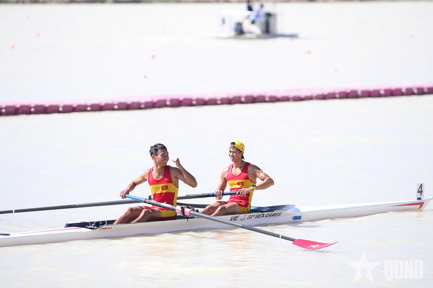 Tiếp nối niềm vui môn rowing, đôi vận động viên Hoàng Văn Đạt và Nguyễn Phú về nhất chung kết nội dung thuyền đôi nam một mái chèo hạng nhẹ và giành huy chương vàng.