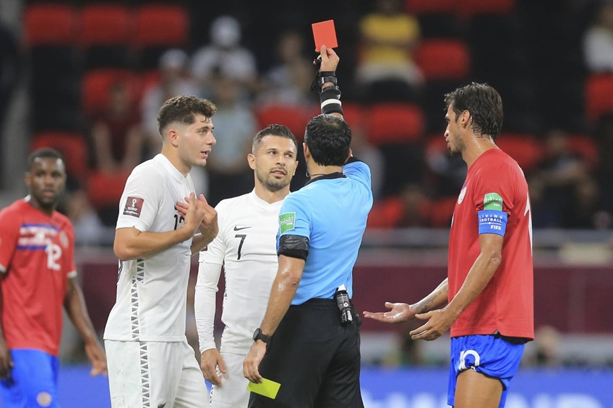 Khó khăn lại đến thêm với mục tiêu của đội bóng châu Đại Dương khi họ chỉ còn chơi với 10 người trên sân do Barbarouses nhận thẻ đỏ trực tiếp sau pha va chạm mạnh khiến Calvo bên phía Costa Rica bị đau ở phút 69.