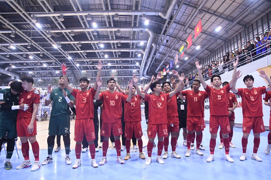| Các tuyển thủ futsal Thái Lan cảm ơn người hâm mộ sau khi giành chức vô địch Đông Nam Á. Ảnh: FA Thailand |