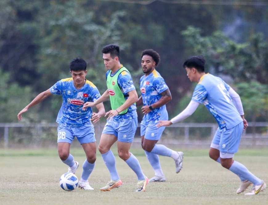 | Một buổi tập của đội tuyển Việt Nam tại Lào. Ảnh: VFF |