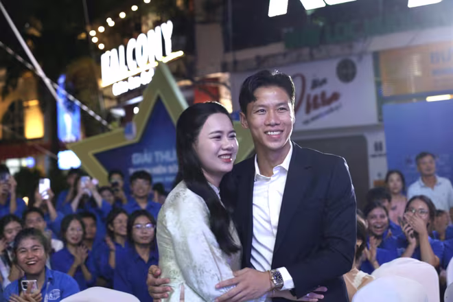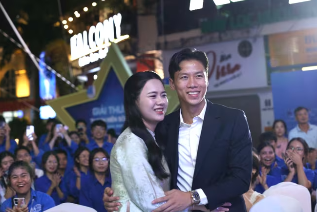 Tối 12-10, tại Hà Nội, vợ chồng cầu thủ Quế Ngọc Hải là một trong những cặp vợ chồng trẻ được nhận danh hiệu “Gia đình trẻ hạnh phúc” năm 2025 do Trung ương Hội Liên hiệp Thanh niên (LHTN) Việt Nam phối hợp cùng đơn vị đối tác tổ chức.