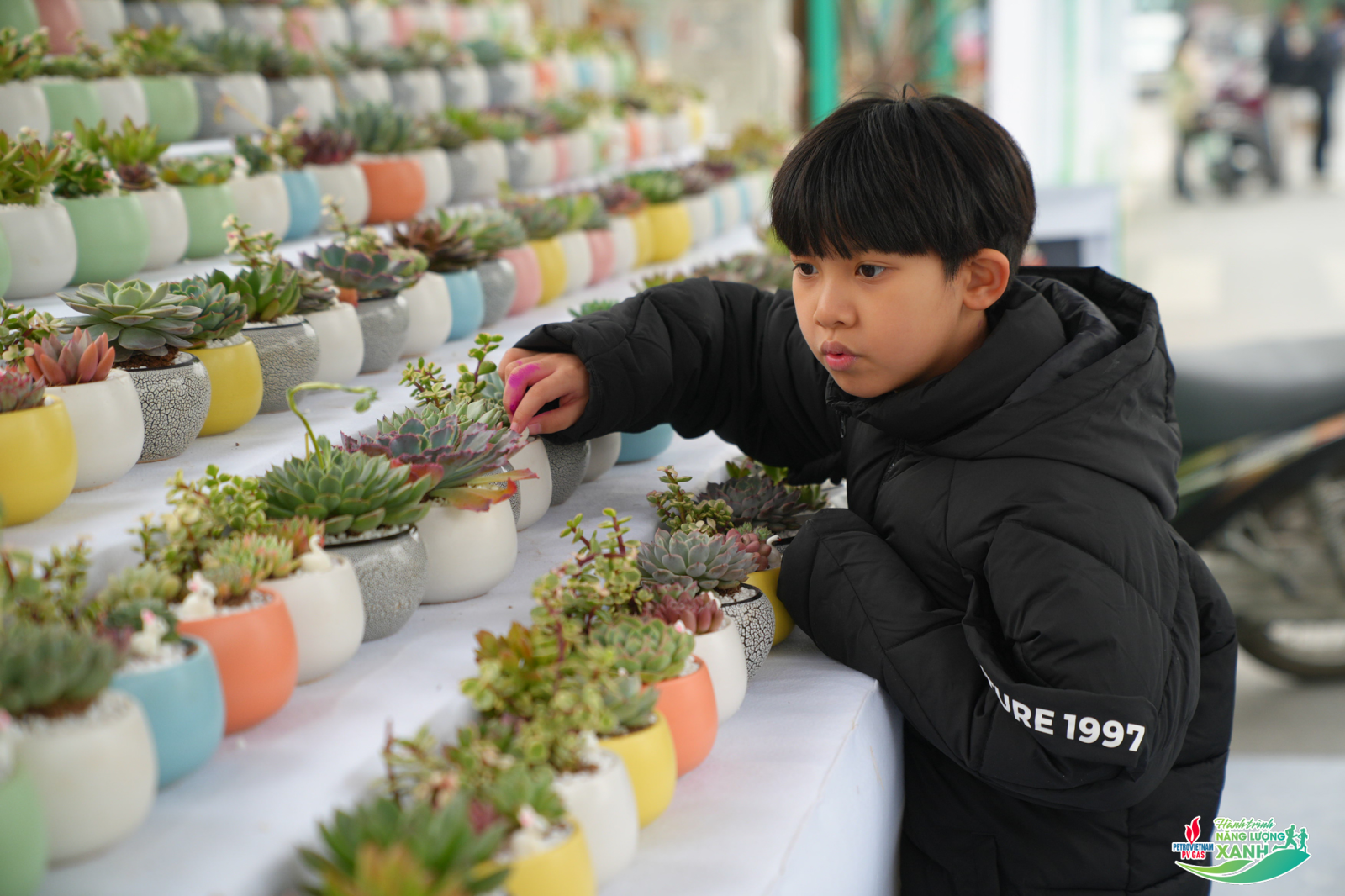 Một bạn nhỏ hào hứng với  “quà tặng” dành mỗi runner sau khi hoàn thành chặng đua. Mỗi cây xanh sẽ là một lời “nhắc nhở” về trách nhiệm với môi trường dành cho mỗi vận động viên.