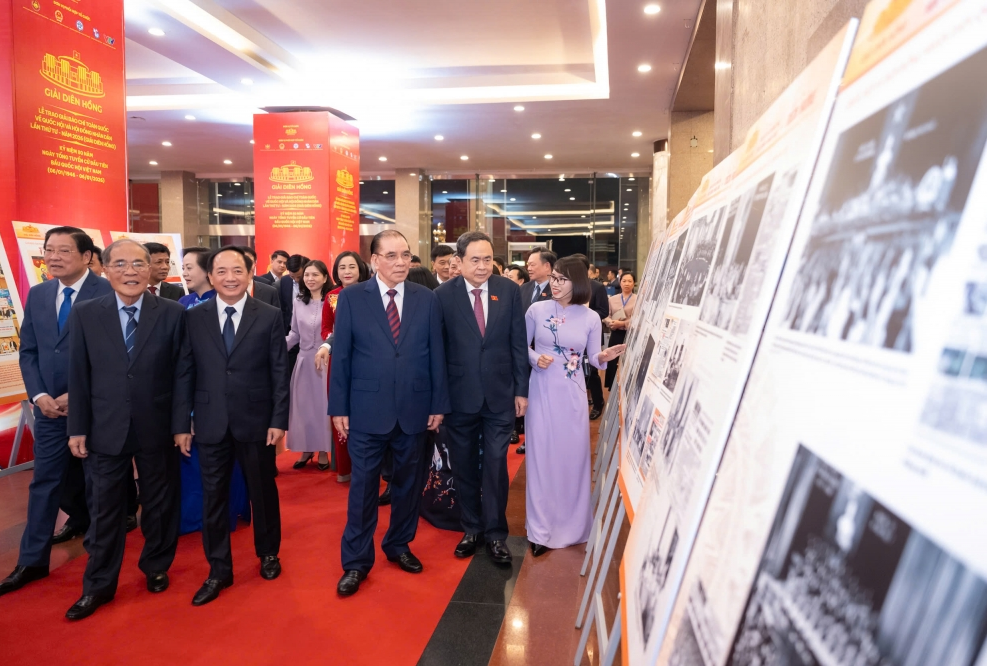 | Các đại biểu tham quan Triển lãm ảnh “Báo chí với Quốc hội, HĐND và dấu ấn Diên Hồng” |
