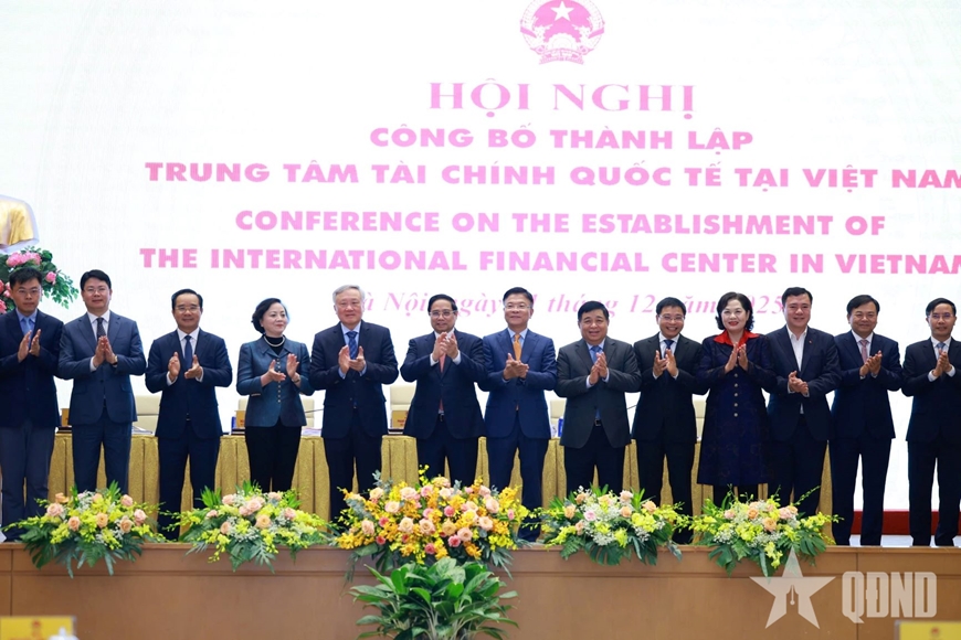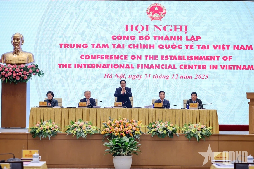 | Thủ tướng Chính phủ Phạm Minh Chính chủ trì Hội nghị công bố thành lập Trung tâm tài chính quốc tế tại Việt Nam, ngày 21-12-2025. Ảnh: HIẾU CÔNG |