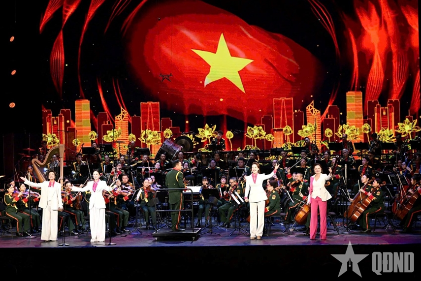 Tiết mục biểu diễn ca ngợi Tổ quốc trong Chương trình "Thanh âm dưới ánh mặt trời". Ảnh: THÁI HƯNG