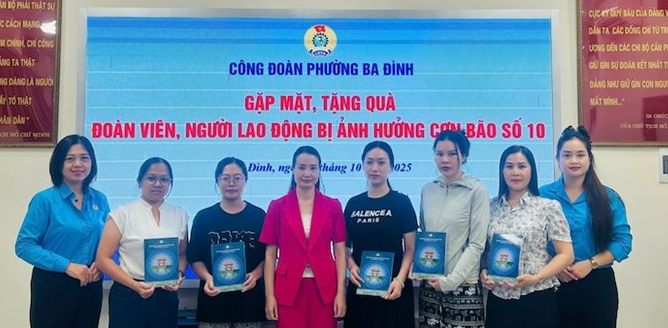 Hà Nội - Công đoàn phường Ba Đình đã gặp mặt và trao quà hỗ trợ cho đoàn viên, người lao động có hoàn cảnh khó khăn do ảnh hưởng của cơn bão số 10.