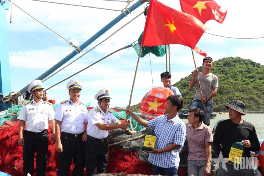 | Tặng quà, động viên ngư dân vươn khơi, bám biển. |