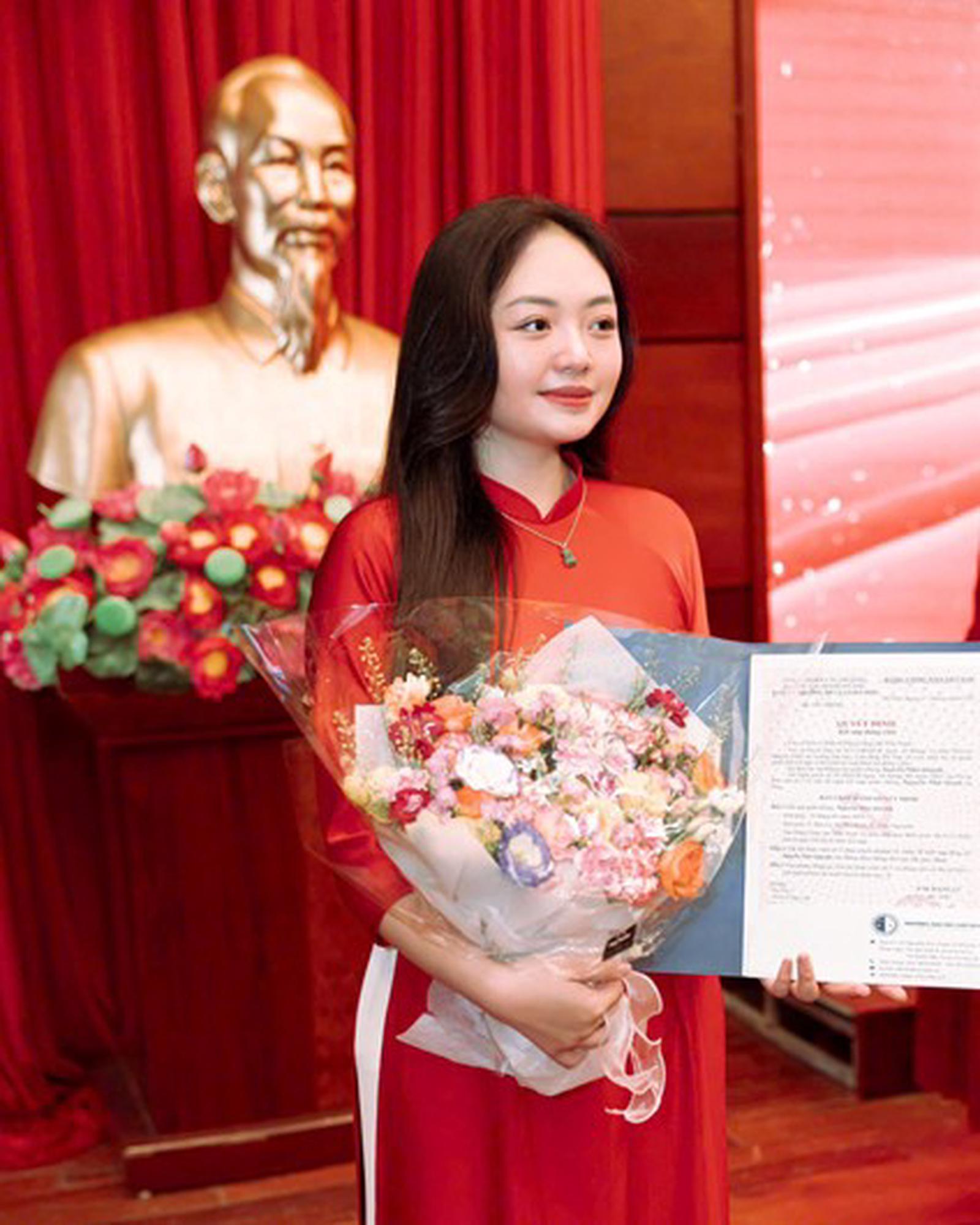 Đảng viên trẻ Nguyễn Như Quỳnh tự hào khi được nhận quyết định được bước vào hàng ngũ của Đảng. Ảnh: Nhân vật cung cấp.