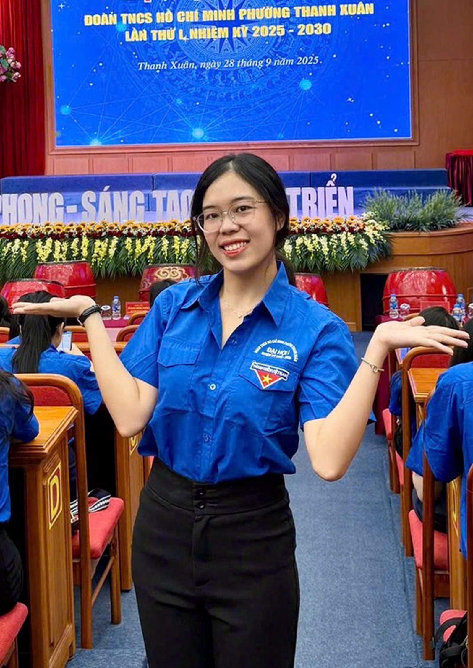 Giảng viên Nguyễn Thuý Ngân tích cực tham gia các hoạt động Đoàn bằng sức trẻ nhiệt huyết và niềm tin vào Đảng. Ảnh: Nhân vật cung cấp.