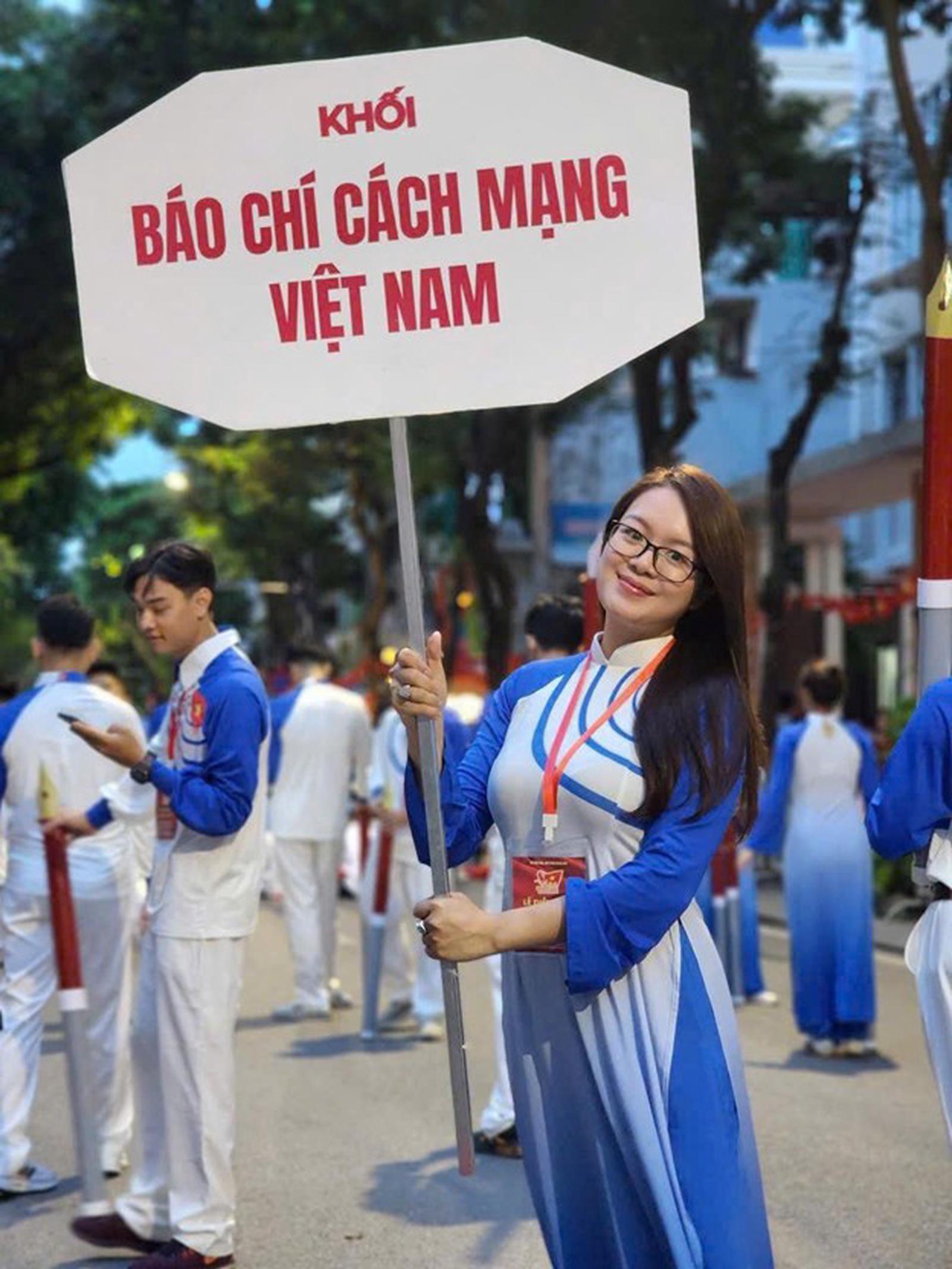 Đảng viên trẻ Nguyễn Thuỳ Linh vinh dự là đại diện Đài Tiếng nói Việt Nam có mặt trong Khối Báo chí Cách mạng Việt Nam tham gia diễu binh, diễu hành kỷ niệm 80 năm Cách mạng tháng Tám thành công và Quốc khánh Nước cộng hoà Xã hội chủ nghĩa Việt Nam. Ảnh: Nhân vật cung cấp.