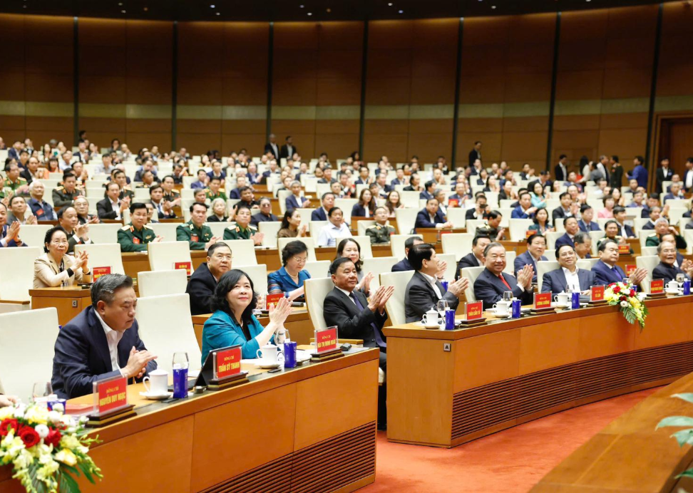 Các lãnh đạo Đảng, Nhà nước và đại biểu tham dự Hội nghị toàn quốc nghiên cứu, học tập, quán triệt và triển khai thực hiện Nghị quyết 79 về phát triển kinh tế Nhà nước và Nghị quyết 80 về phát triển văn hóa Việt Nam của Bộ Chính trị. Ảnh: P.Thắng