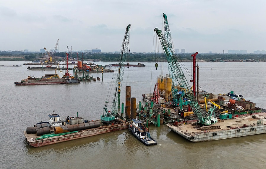 Tại 7 dự án cầu vượt sông Hồng, các nhà thầu đang huy động tối đa nhân lực, máy móc, bố trí nhiều mũi triển khai thi công 24/7, quyết tâm vượt lũ tiểu mãn vào cuối tháng 5-2026, tạo đà để hoàn thành dự án vào quý II-2027. Tuy nhiên, mặt bằng không được bàn giao đầy đủ đang ảnh hưởng không nhỏ tới tiến độ thi công.