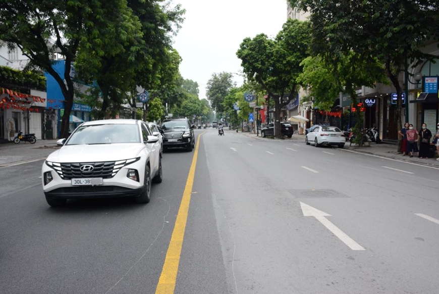 | Dải phân cách cứng trên đường Điện Biên Phủ được thay bằng vạch kẻ nét liền để phục vụ các hoạt động kỷ niệm. |