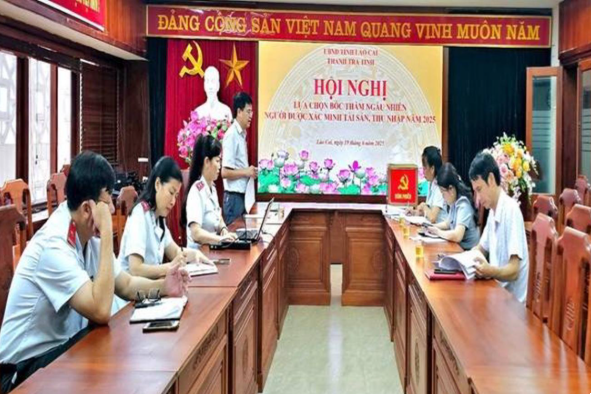 Hội nghị lựa chọn, bốc thăm ngẫu nhiên người được xác minh tài sản, thu nhập năm 2025. Ảnh: Kiều Liên