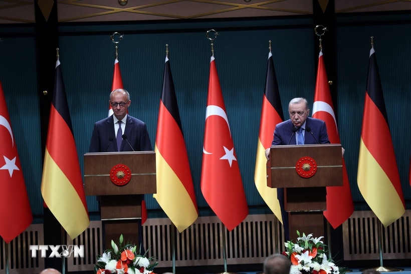 Thủ tướng Đức Friedrich Merz (trái) và Tổng thống Thổ Nhĩ Kỳ Recep Tayyip Erdogan tại cuộc họp báo ở Ankara. Ảnh: TTXVN |