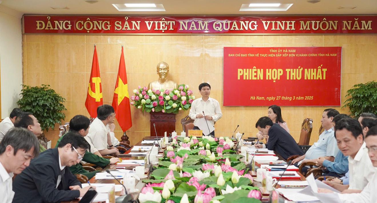 Sáng 27/3, Ban Chỉ đạo (BCĐ) tỉnh Hà Nam về thực hiện sắp xếp đơn vị hành chính trên địa bàn tổ chức họp phiên thứ nhất công bố quyết định thành lập, quy chế làm việc và thảo luận những nội dung công việc của BCĐ trong thời gian tới.
