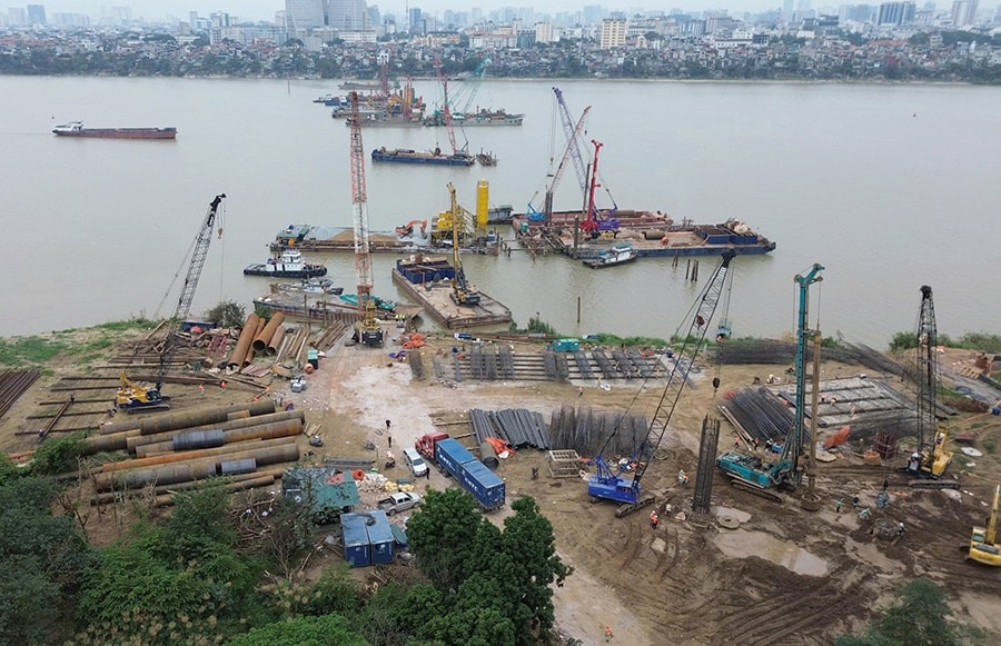 Công trường thi công Dự án đầu tư xây dựng cầu Trần Hưng Đạo. Ảnh: Quang Thái