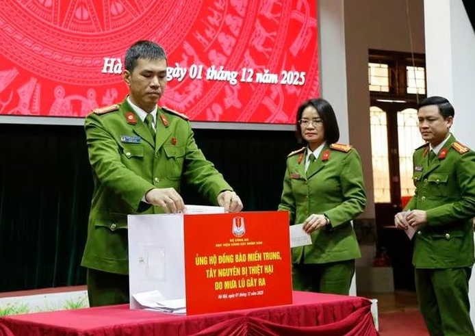 Ngay sau đó, thiết thực cụ thể tinh thần “Gần dân nhất” trong phong trào thi đua, thể hiện tinh thần sẻ chia và truyền thống nhân văn của lực lượng Công an nhân dân, Học viện CSND đã tổ chức phát động ủng hộ đồng bào miền Trung - Tây nguyên bị thiệt hại do mưa lũ.
