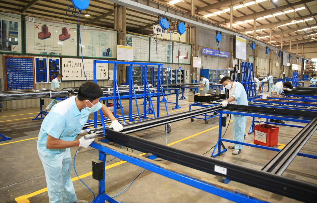 Sản xuất cửa tại Công ty cổ phần Eurowindow (Khu công nghiệp Quang Minh). Ảnh: Nguyễn Quang