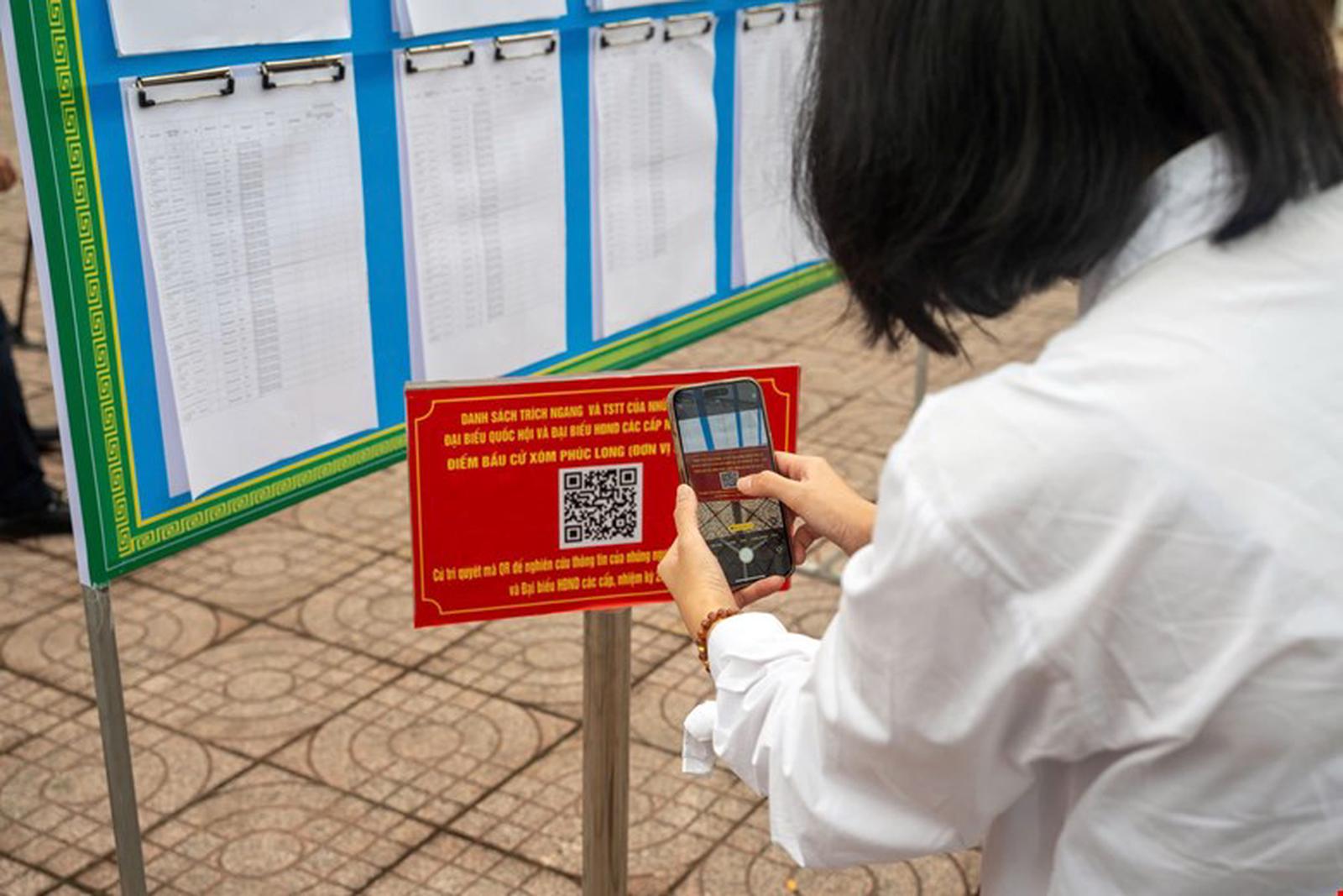 Cử tri có thể quét mã QR để theo dõi danh sách trích ngang và tiểu sử tóm tắt của những người ứng cử đại biểu Quốc hội và đại biểu HĐND các cấp. Ảnh: QH