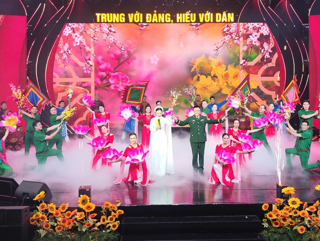 | Chương trình nghệ thuật “Trung với Đảng, hiếu với dân” và phát động Cuộc thi báo chí “Vững bước dưới cờ Đảng”, tháng 2-2025. Ảnh: PHÚ SƠN |